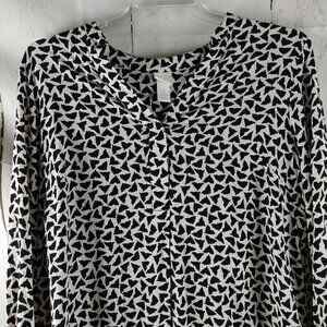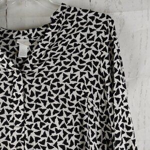 H&M Womens Size M Black & White Animal Print Long Sleeve Tunic Blouse
