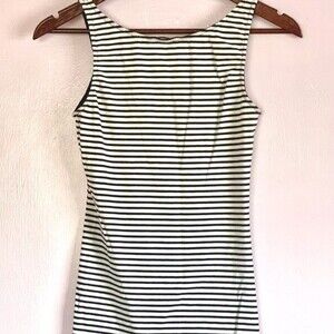 H&M Women’s Sleeveless Stripes with collar floral accent Sz XS Navy