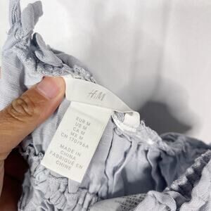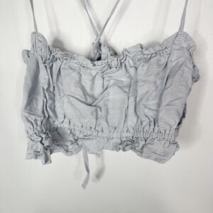 H&M Womens Small Light Blue Grey Camisole Crop Top Tank Ruffled Open Back Woven