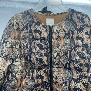 H&M Women's Snake Print Quilted Coat Full Zip Multicolor Size Small Pockets