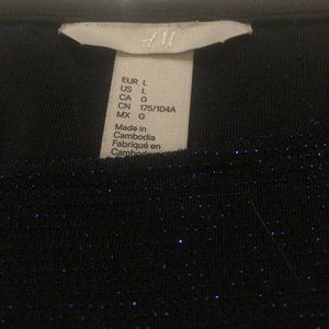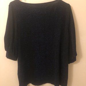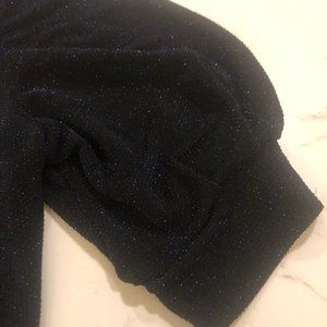 Fun and stretchy black blousy top with royal blue metallic and sparkly threads