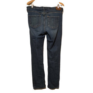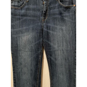 H&M Womens Straight Leg Jeans Blue Stretch Whiskered Medium Wash Mid Rise 33x34