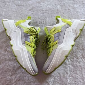 H&M Womens Sz 6 Neon Green Highlighter Lace Up Chunky Style Trainers Sneakers