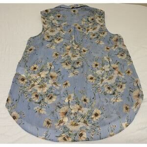 H&M Women’s Sz 8 Sleeveless Button Up Sheer Floral Striped Cottage Prairie Boho