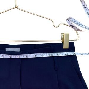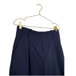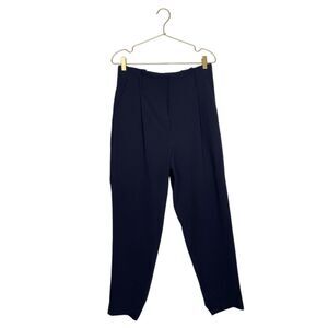 Upgrade your wardrobe with these chic and sophisticated H&M tailored ankle pants in a deep navy blue. Perfect for work or casual wear, these pants offer a polished look with their sleek design. Featuring a mid-rise waist, side zipper closure, and faux back pockets, these trousers provide both comfort and style.