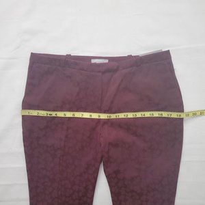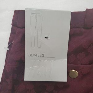 H&M Women’s Tonal Floral Print Burgundy Trouser Slim Leg Pants Size 8 NWT