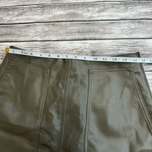 H&M Women's Vegan Faux Leather Mini Skirt Dark Mossy Army Olive Green 8 Pockets