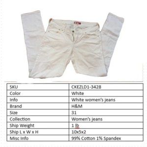 H&M Women's White Adjustable Waist Skinny Leg Denim Jeans Size 31