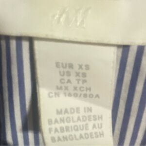 H&M Women’s White|Blue 100% Cotton Striped Shirt Sz XS