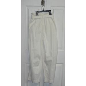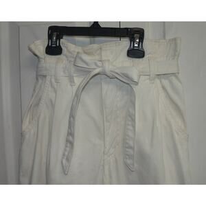 H&M Women's Wide Leg Cotton Paper Bag Waist Ankle Pants in Ivory Size 4 $35