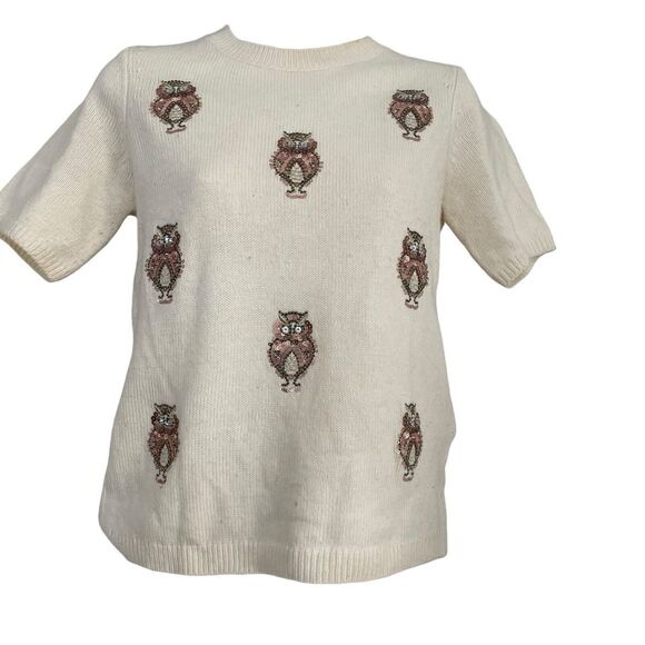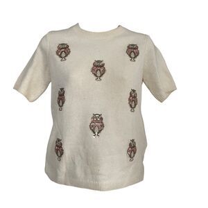 H&M Womens Wool Blend Owl Short Sleeve T-shirt Sweater Top SZ XS