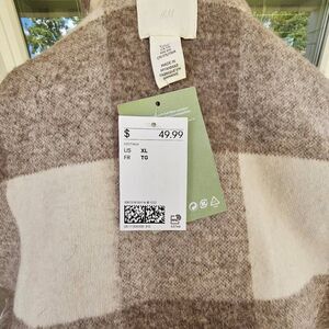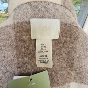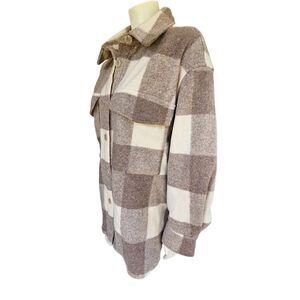 H&M Women’s XL Plaid Shacket Coat Jacket Taupe Beige Check Fleece New w/ Tags