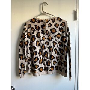 H&M Womens XS Zip Back Leopard Print Crew Neck Pullover Sweater Cheetah