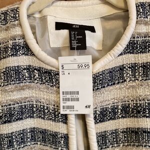 H&M Womens size 4 Textured Weave striped boucle Jacket lined zip up NWT