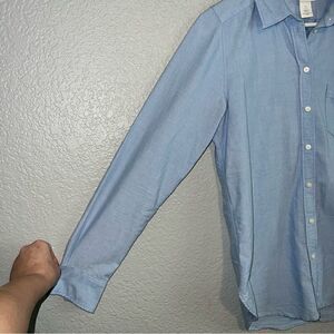H&M Womens Collar Long Sleeve Regular Fit Round Hem Button Up Shirt Blue Size 2