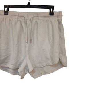 H&M Women's Ivory Cotton/Poly Knit Drawstring Sweatshorts w Pockets EUC sz L