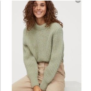 H&M Wool Alpaca Blend Sweater Size S Oversized Pullover Mint Green Fuzzy New