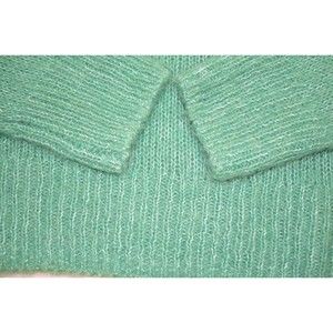 Beautiful solid mint green soft fuzzy knit pullover with ribbed knit neckline, cuff and hem detail.