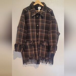 H&M Wool Blend Plaid Fringed Shacket Jacket Manteco Woven In Italy Collection XL