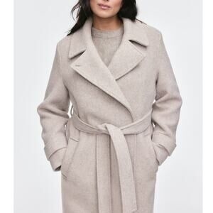 H&M Wool Blend Tie Belted Coat Trench Coat Cozy Regular Fit Beige Size XL