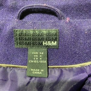 H&M Purple Pea Coat. Size 4 wool blend coat. Buttons up, fully lined. In great condition with no stains.