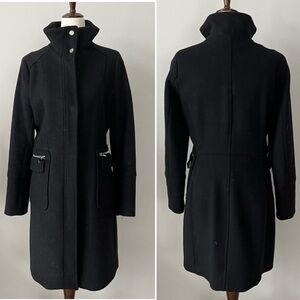 H&M Wool Funnel Neck Mid-Length Fitted Classic Coat with Silver Hardware