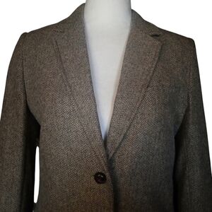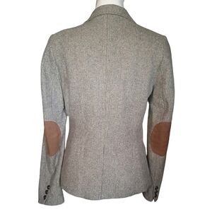 H&M Wool Silk Blend Herringbone Button Front Blazer Faux Suede Elbow Patches Med