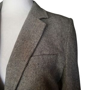 H&M Wool Silk Blend Herringbone Button Front Blazer Faux Suede Elbow Patches
