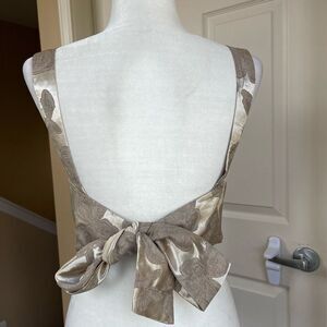 H&M Woven Short Top with Bow Tie (Gold/Beige) - 0