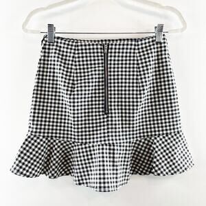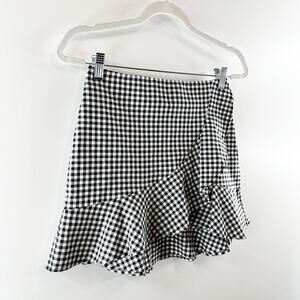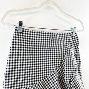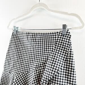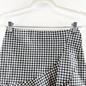 H&M Wrap Front Ruffle Hem Gingham Mini Skirt Black White 6