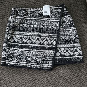 Wrap yourself in the chic sophistication of this H&M Wrap Skirt, a must-have for any fashion-conscious wardrobe. The black and white geometric print exudes a timeless appeal, while the tweed cotton blend ensures comfort and durability. A playful fringe trim adds a touch of whimsy to this versatile piece, making it perfect for various occasions from a casual day out to a cocktail party.