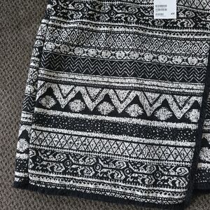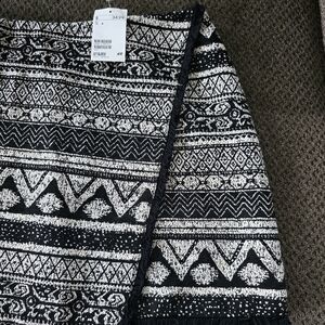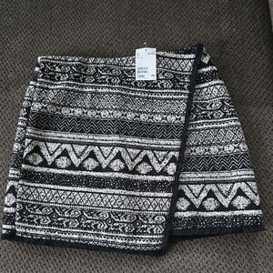 H&M Wrap Skirt Women Sz 8 Black White Paisley Fringe Short Tweed New