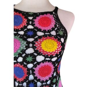 H&M X Coachella Granny Square Knit Bright Colorful Boho Cover Up Dress