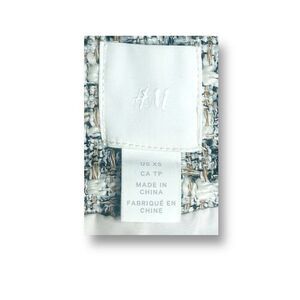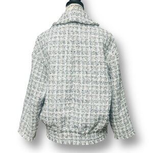 H&M XS Black White Tweed Cropped Jacket Textured Fringe Old Money Preppy Retro