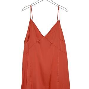 H&M XXL NEW Y2K Womens Red Orange Midi Slip Dress Spaghetti Strap Retro Silky