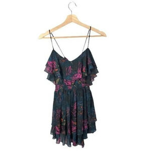 H&M Y2K Navy Blue Floral Cross Back Tunic Tank Top