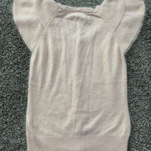It’s super soft and slightly fuzzy, but is not itchy at all. It has elevated details like ruffle sleeves and geometric buttons.