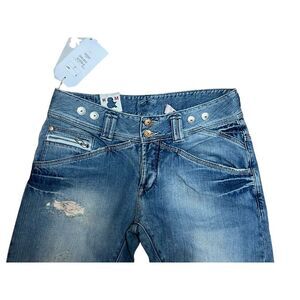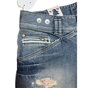 H&M Y2K button fly zipper back pockets distressed hippie woman’s 8 (29) patch