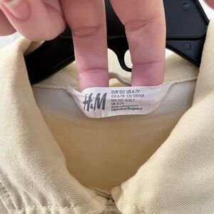 H&M Yellow Denim Twill Jacket Snap Buttons Girls Size 6-7 years. I loved this jacket on my daughter, so cute. Yellow jacket with snap buttons. Lightweight, stretch denim twill. Has been worn and washed, and there is some light blue color bleed on the back of the jacket, please see the pictures. No other issues that I can find, still has a ton of life left.