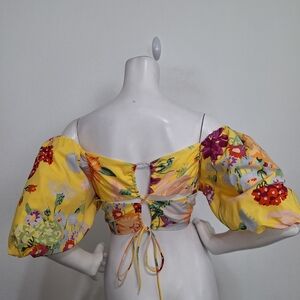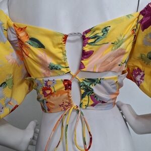 H&M Yellow Multicolor Floral Tropical Tie Back Off The Shoulder Crop Top Size XL