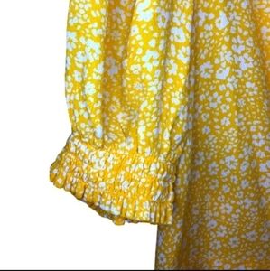 H&M Yellow White Floral Print Short Sleeve Dress Women's Large L Button Up EUV