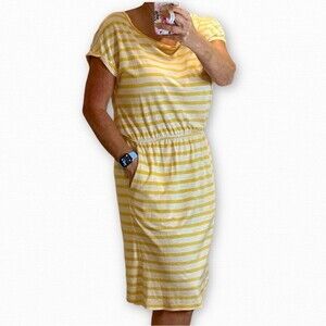 H&M Yellow and White Striped Jersey Dress - Elastic Waist - Size Medium NWOT