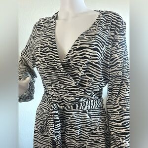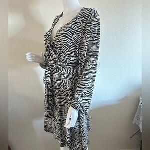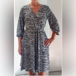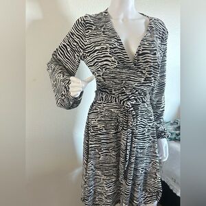 H&M Zebra Print Long Sleeve Midi Dress - Size Medium