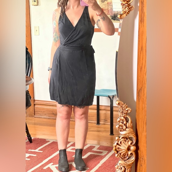 The dress has quite the deep V which makes it an easy night out dress. It’s a mock wrap dress. Purchased at H&M in Kuwait.