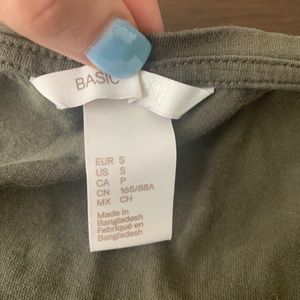 Super cute short-sleeve tee. Worn only once so it’s in good condition! Pairs super cute with shorts & sandals in the summer time, and jeans & wedges! Color is a little darker than seen in pictures, a greenish/brownish color