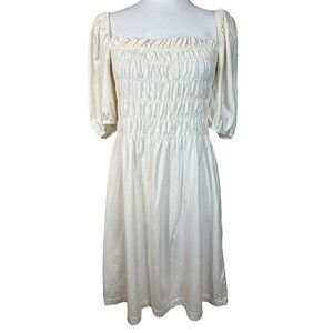 Chic light cream dress with subtle pattern. Perfect for any occasion.
