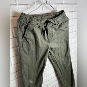 Joggers in stretch cotton twill with an elasticated drawstring waist, side pockets and a decorative back pocket. Tapered legs with shaping seams at the knees and ribbed hems.