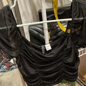 Black mesh ruffled top new WOT