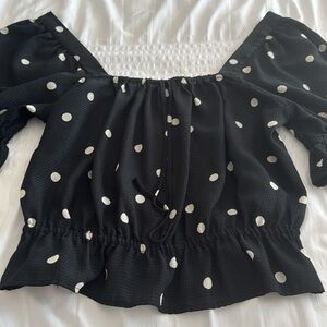 H&M black and cream polka dot blouse size medium
