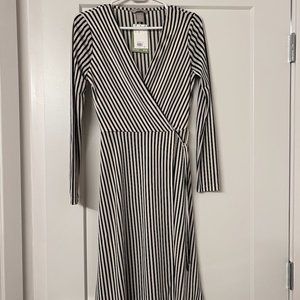 H&M black and white striped wrap dress *never worn*
